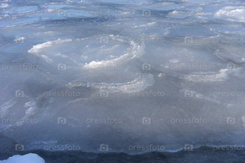 Ледяная поверхность воды с трещинами и льдинами