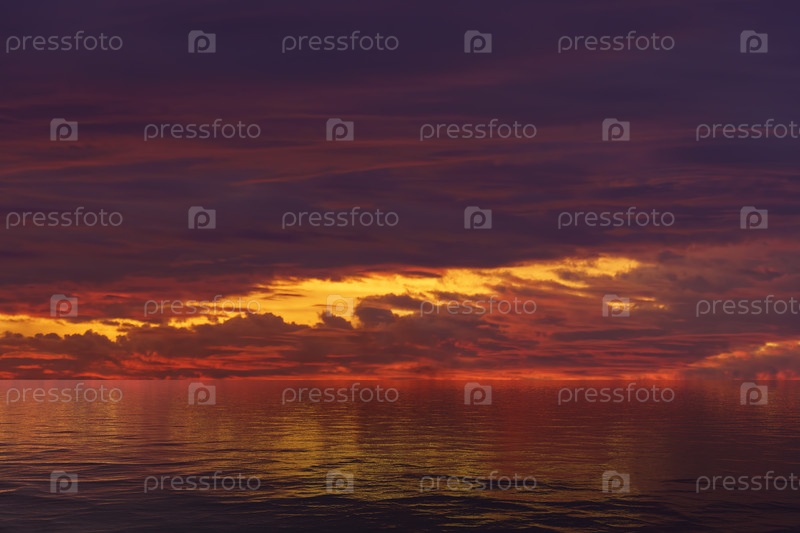 Морской пейзаж с красным драматическим закатом