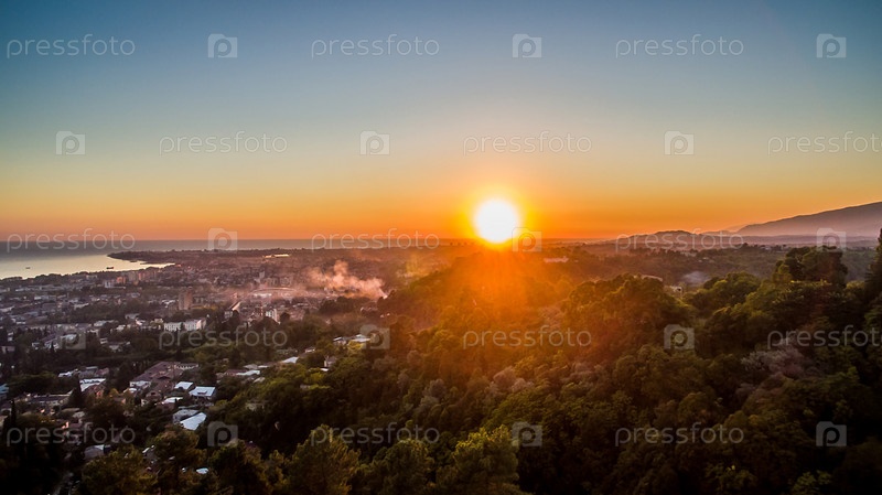 Вид с воздуха на городской пейзаж во время заката