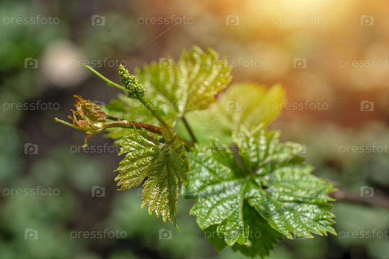 Росток виноградной лозы с молодой гроздью винограда