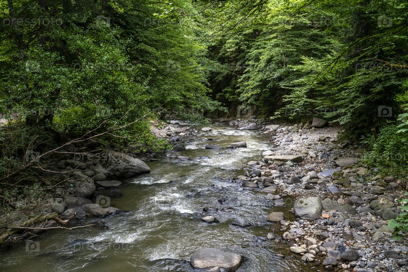 Горная река в Зеленом парке в Боржоми, Грузия