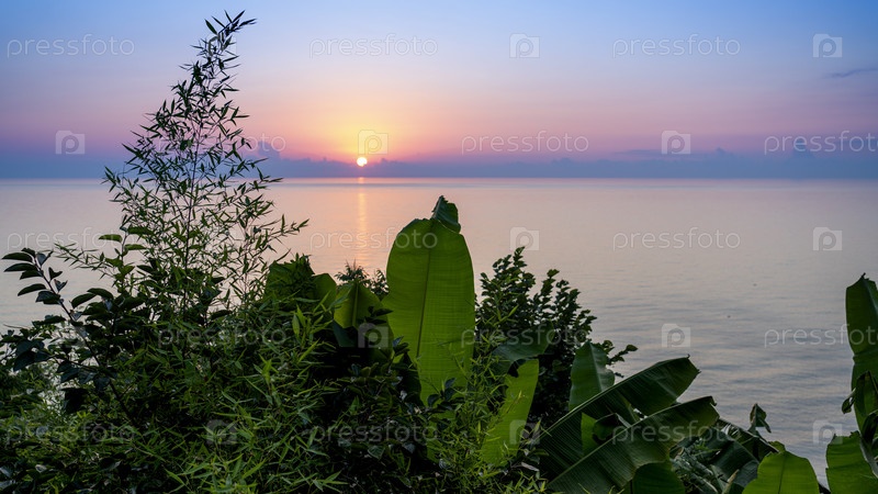 Морской закат. Солнечный путь бликов на воде. Солнце уходит за горизонт