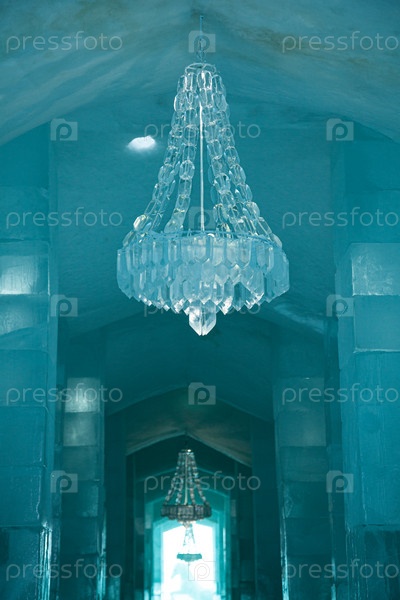 Голубая люстра из льда в Ледяной отель Ice Hotel, ШВЕЦИЯ
