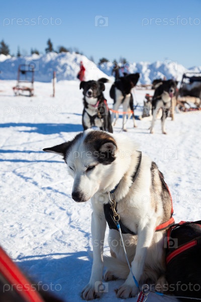 катание на собачьих упряжках в Юккасьярви, Норрботтен, Швеция. лыжничество с хаски-собаками в Ice Hotel, Jukkasjarvi, Kiruna, Norrbotten County, Lapland, Sweden, Europe