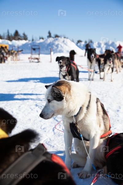 катание на собачьих упряжках в Юккасьярви, Норрботтен, Швеция. лыжничество с хаски-собаками в Ice Hotel, Jukkasjarvi, Kiruna, Norrbotten County, Lapland, Sweden, Europe