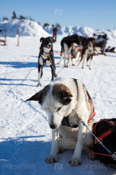 катание на собачьих упряжках в Юккасьярви, Норрботтен, Швеция. лыжничество с хаски-собаками в Ice Hotel, Jukkasjarvi, Kiruna, Norrbotten County, Lapland, Sweden, Europe