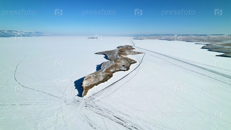Остров Огой с воздуха. Замерзшее озеро Байкал