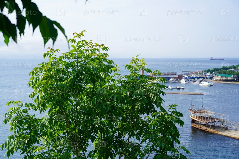 Морской пейзаж с видом на лодочную стоянку Владивостока