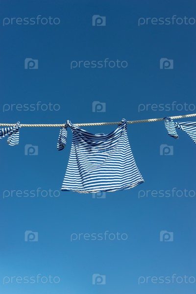 Морской жилет на веревке на фоне голубого неба