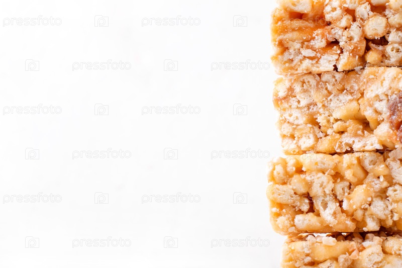 Белый фон с тортом Чак Чак, разрезанным на батончики. Татарский и башкирский десерт с медом. Копировать пространство