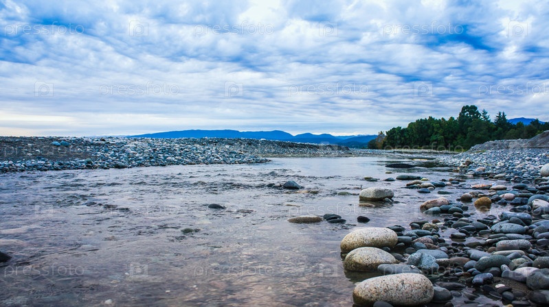 Пейзаж с рекой и скалистым берегом