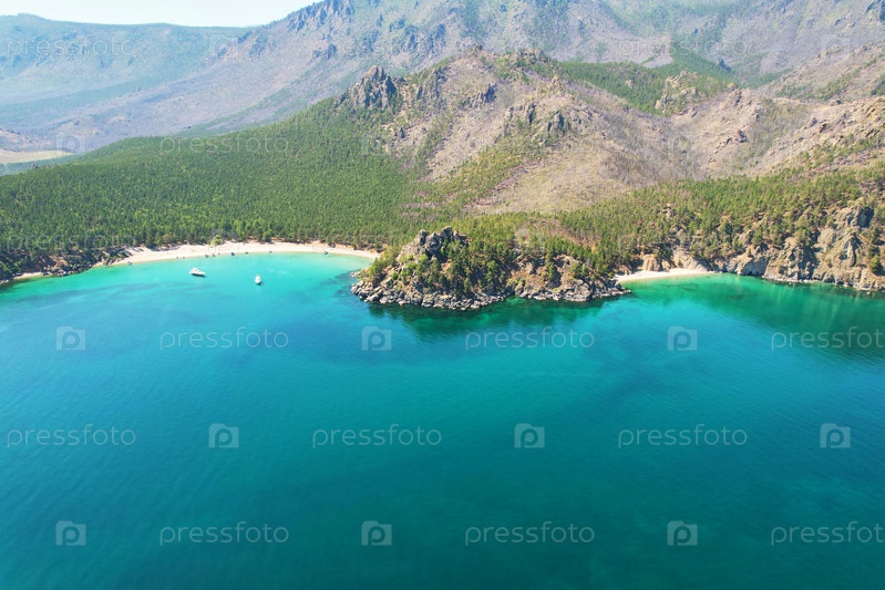 Красивый песчаный пляж в солнечный летний день. Озеро Байкал, Песчаная бухта