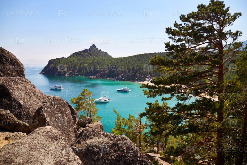 Живописный морской пейзаж. Яхты в бухте с бирюзовой водой
