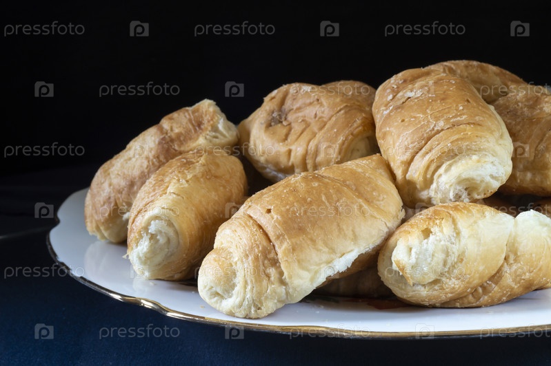 Сладкие круассаны в тарелке на столе