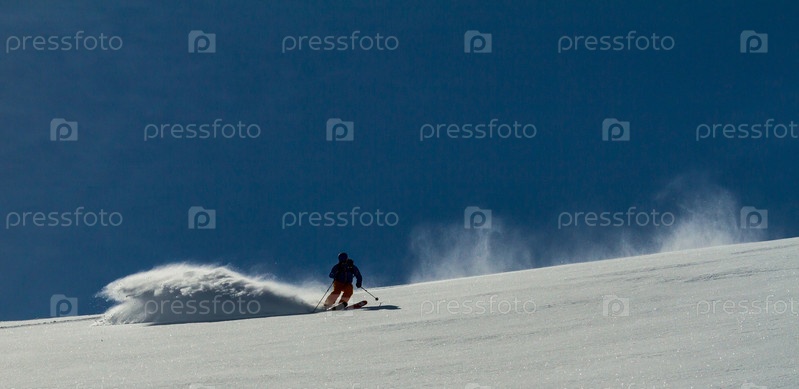 Лыжник на фоне неба. Фрирайд на Камчатке
