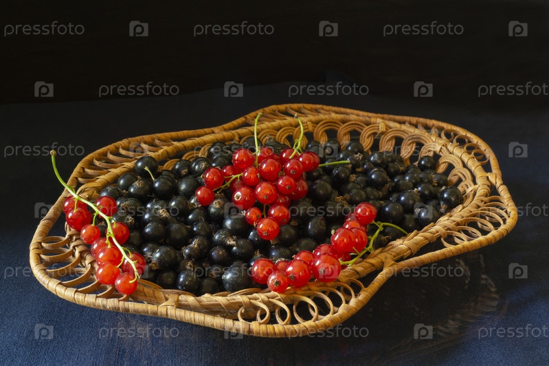 Красная смородина в корзине на столе