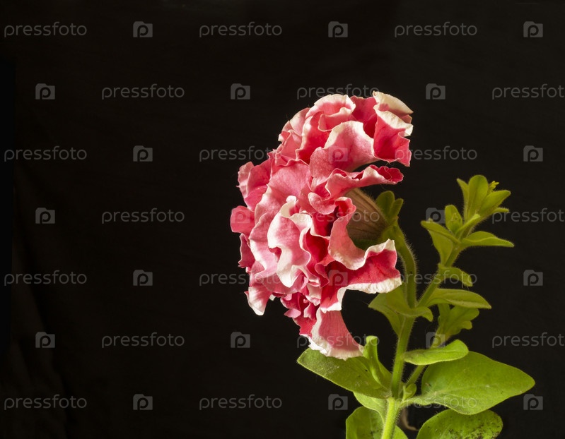 Красная двойная петуния на черном фоне