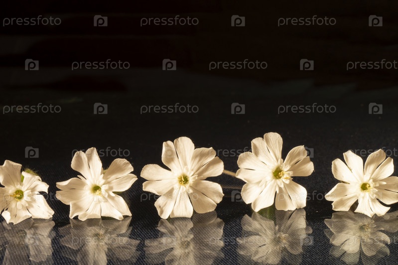 Silene latifolia цветет весной на черном фоне