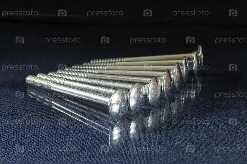 Стальной мебельный болт на стеклянном столе с отражением