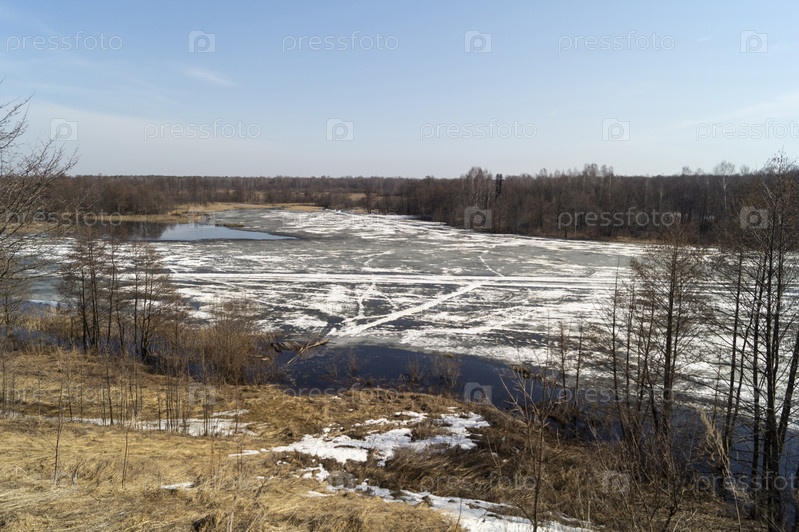 Белый лед на реке весной