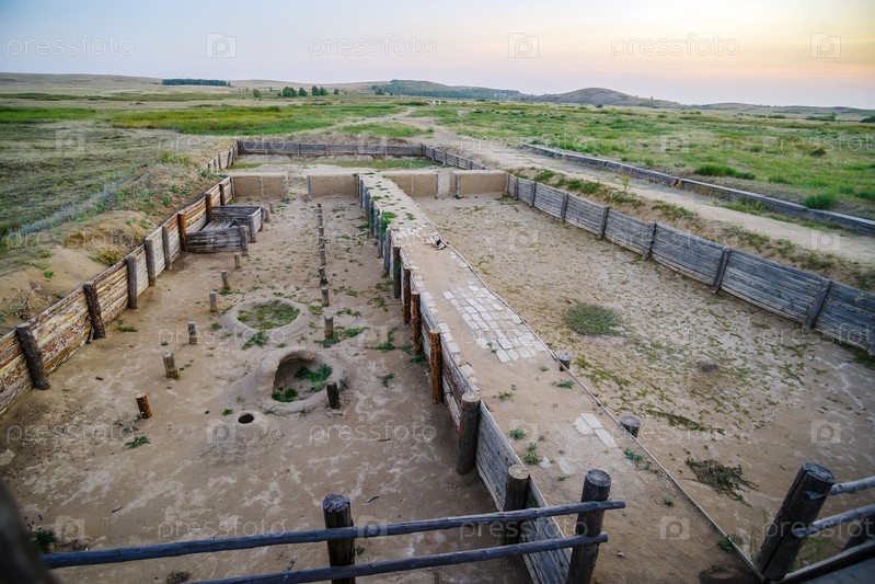 Аркаим, Россия - 24 августа 2021 г.: Археологический памятник древнего укрепленного поселения бронзового века Аркаим