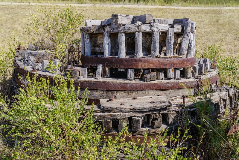 Шестерня и верхняя шестерня горизонтального вала ветряка. Челябинская область, Россия