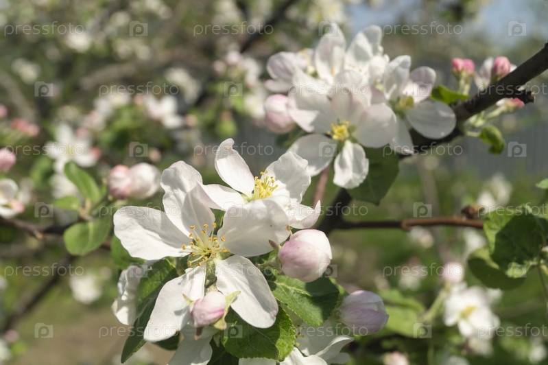 Цветущий яблоневый сад весной