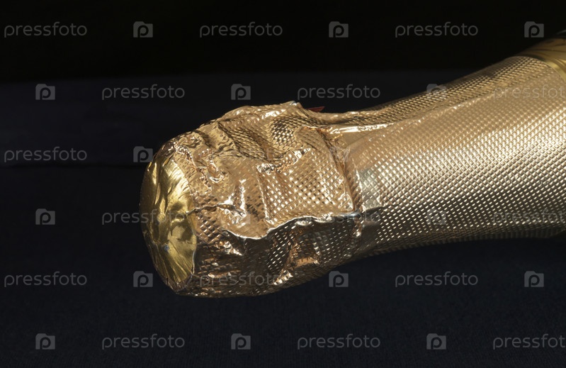 Закрытие бутылки шампанского на черном фоне крупным планом