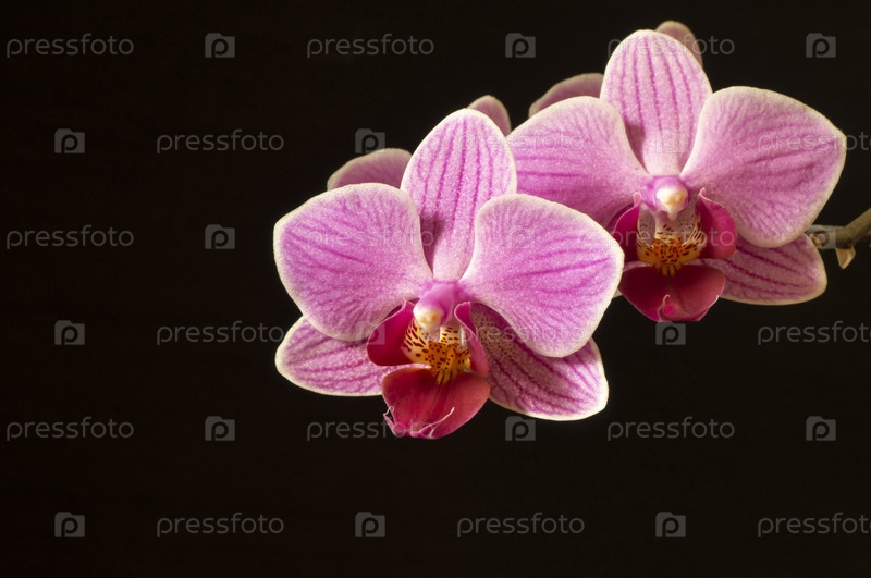 Ветка с цветком орхидеи на черном фоне