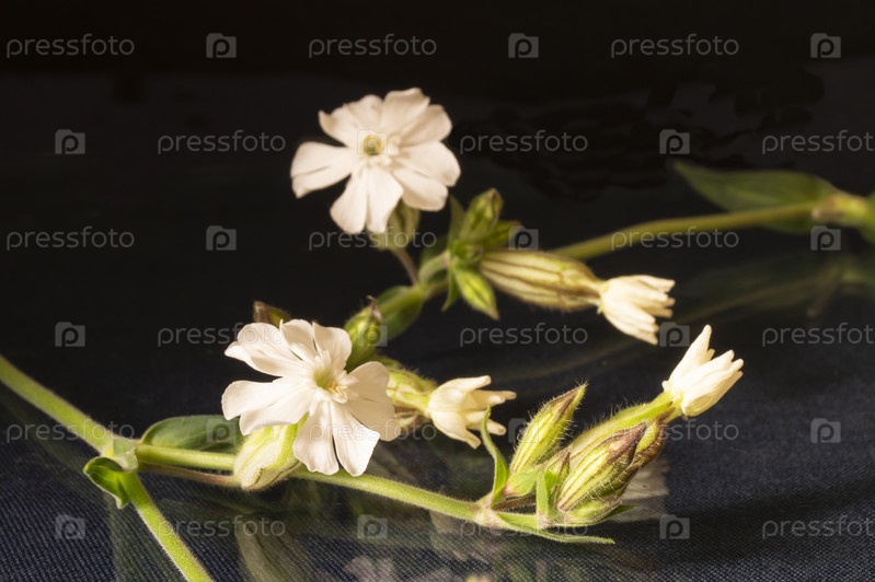 Silene latifolia цветет весной на черном фоне