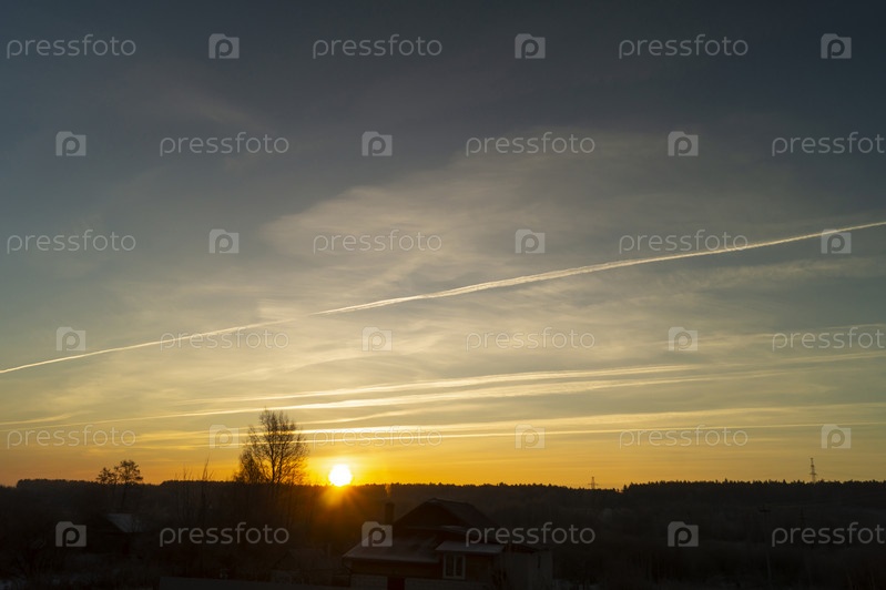 Пейзаж с восходом солнца в сельской местности