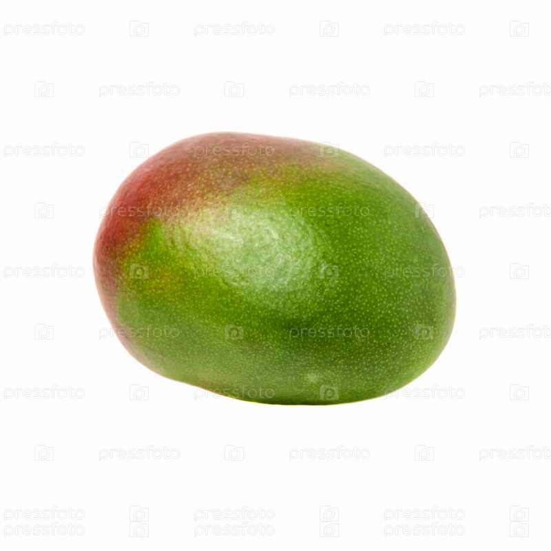 Зеленый красный спелый тропический фрукт манго, выделенный на белом фоне крупным планом