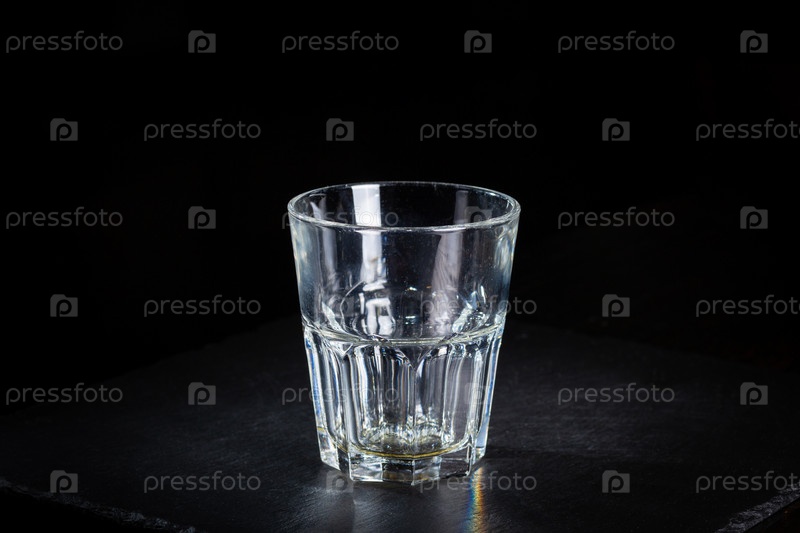 Граненый пустой стакан стоит на черном фоне