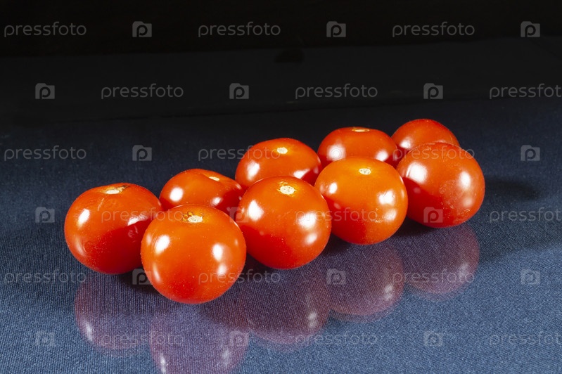 Красные помидоры лежат на столе с отражением