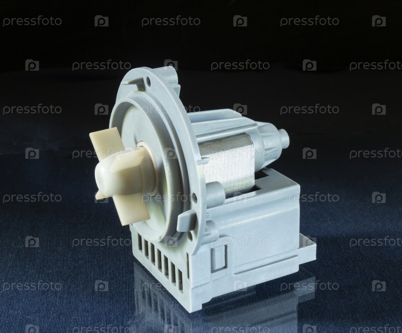 Насос стиральной машины на синем столе с отражением