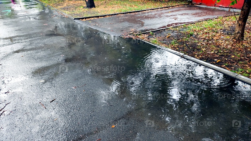 Капли воды на луже. Осень. Дождь