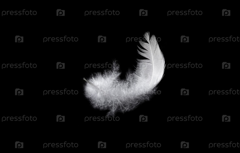 Перо белой птицы на черном фоне