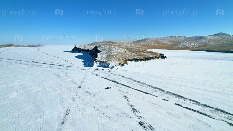 Дороги по льду озера. Зимнее путешествие на машине