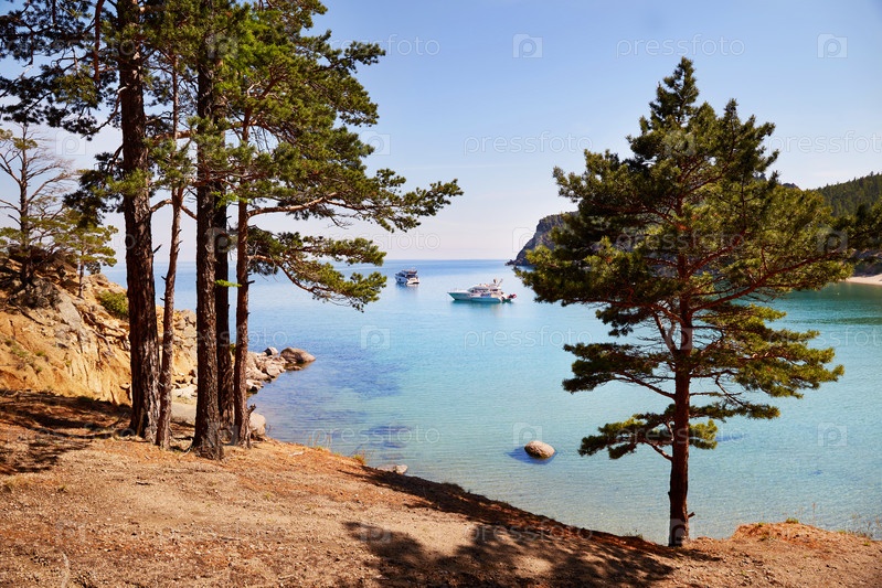 Живописный морской пейзаж. Яхты в бухте с бирюзовой водой