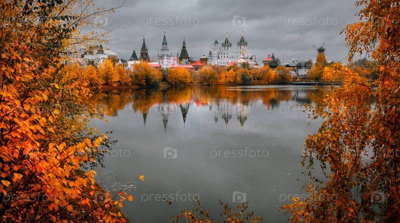 Вид на Измайловский кремль и Серебряно-Виноградный пруд осенью