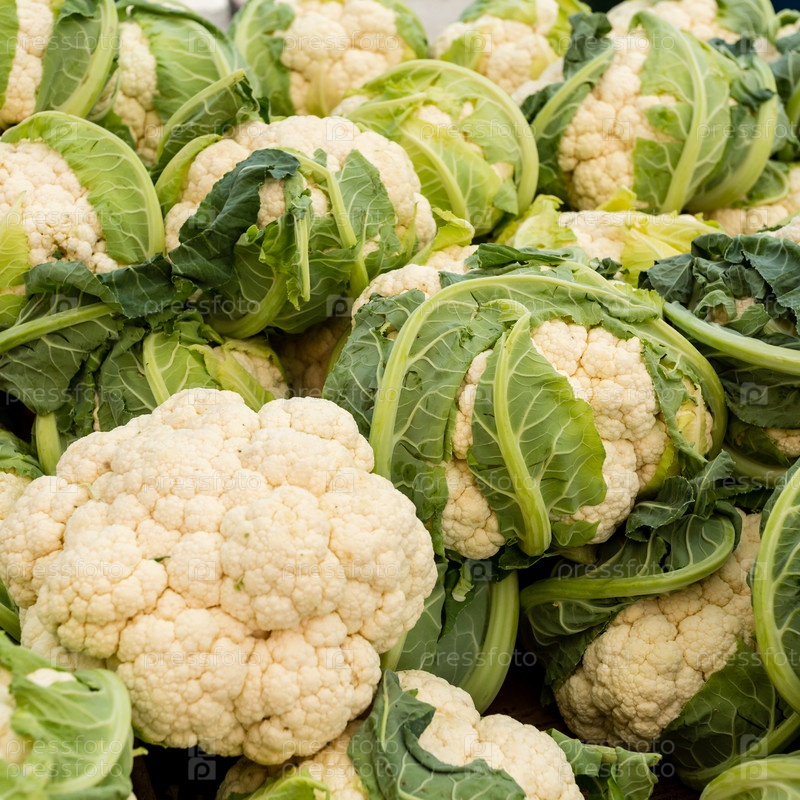 Здоровая веганская еда. Свежая органическая цветная капуста на фермерском рынке. Фон цветной капусты крупным планом