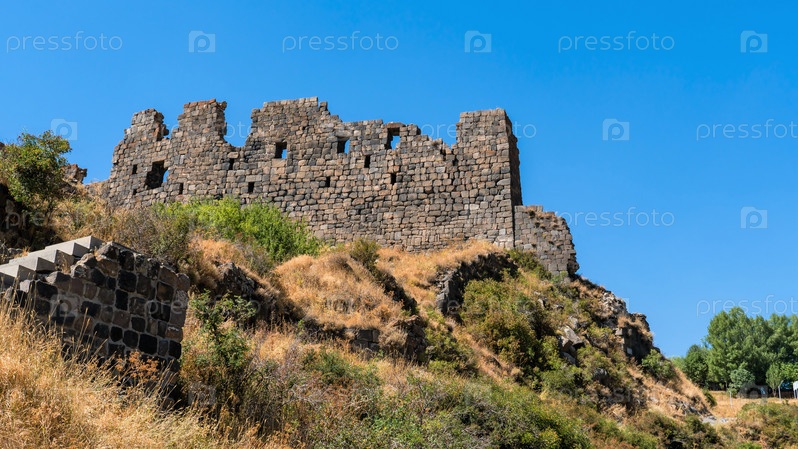 Армения, Амберд, сентябрь 2022 г. Руины стен древней крепости на горе