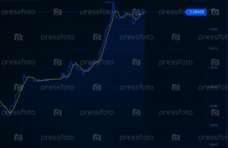 Абстрактный финансовый график с желтой линией восходящего тренда на синем фоне. Творческий фон цифровой графики, инвестиции. Абстрактная финансовая диаграмма, финансовая и торговая концепция
