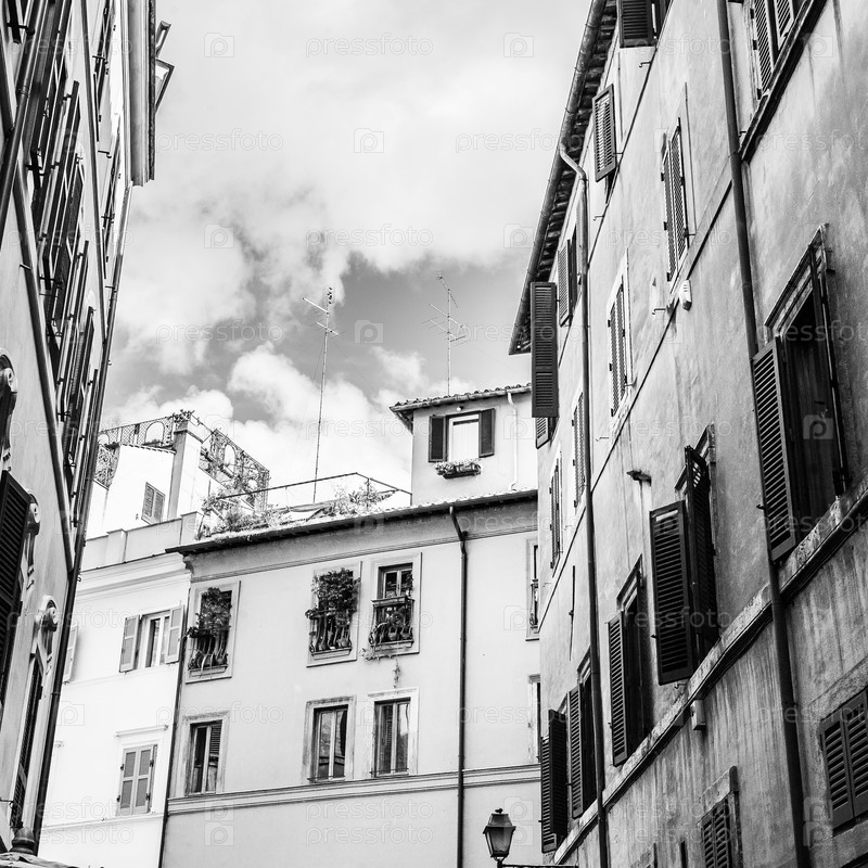 Черно-белые старомодные традиционные окна в Риме, Италия
