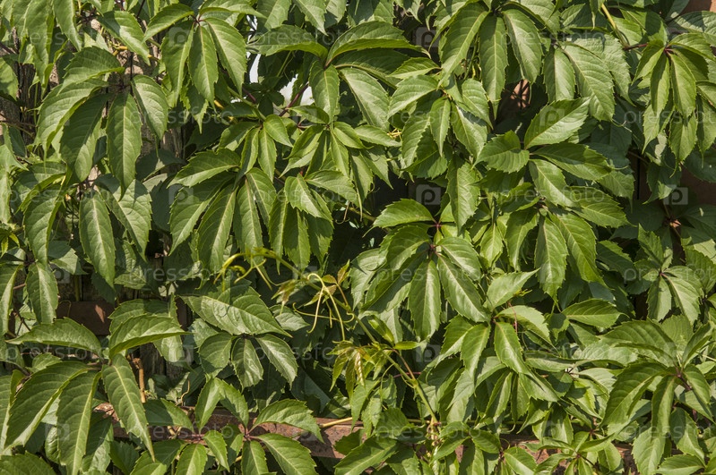 Стена, покрытая виноградно-зелеными листьями. Естественный фон от вьющегося растения. Вертикальное озеленение