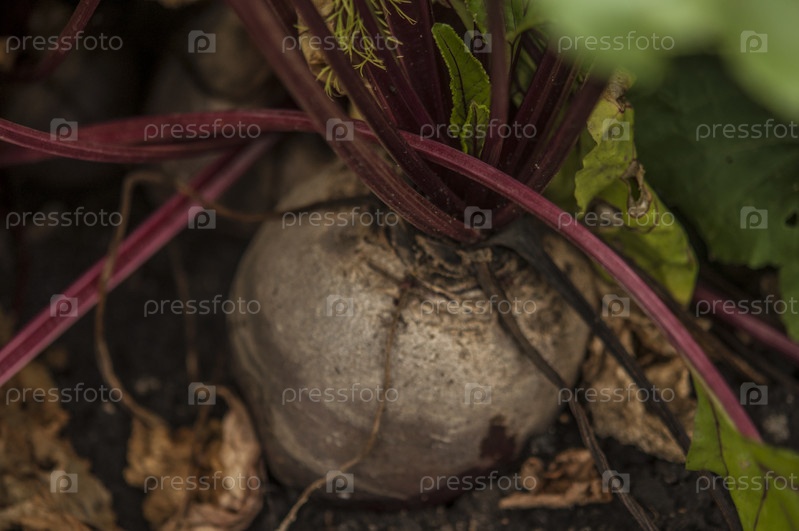 Свежая свекла растет в земле