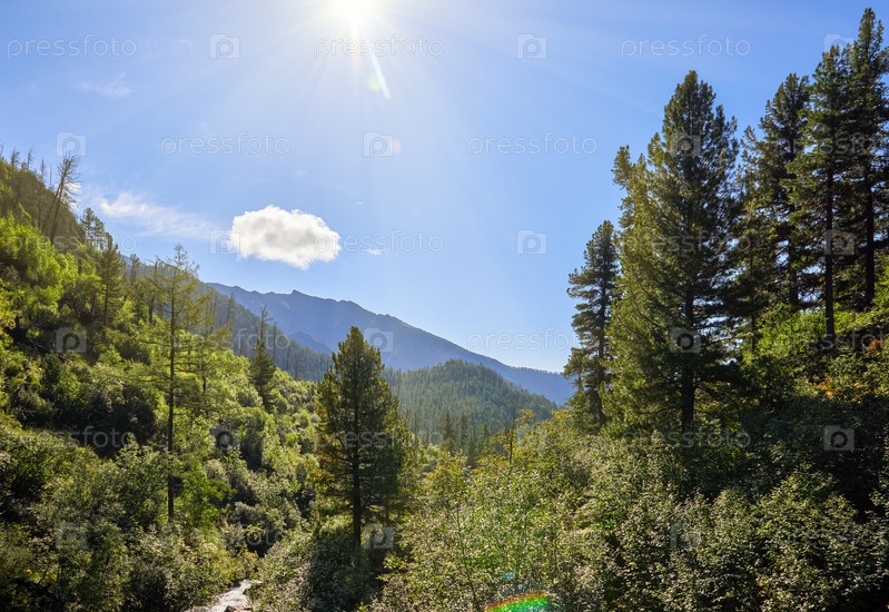 Горный лес в яркий солнечный день