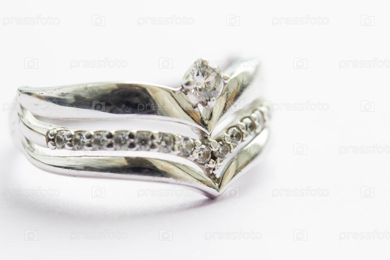 Крупным планом серебряное кольцо на белом фоне