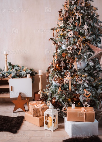Празднично украшенная елка. Фон для счастливого нового 2020 года. свободное место для текста