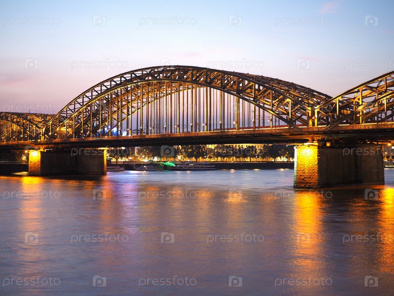 Hohenzollernbruecke (имеется в виду мост Гогенцоллернов), пересекающий реку Рейн в Кельне, Германия